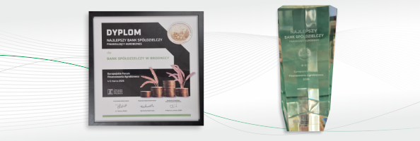 Zajęliśmy I miejsce w ogólnopolskim rankingu „Liderzy Finansowania Agrobiznesu 2025”. BS Brodnica został uznany za najlepszy bank spółdzielczy w Polsce wspierający sektor rolny.