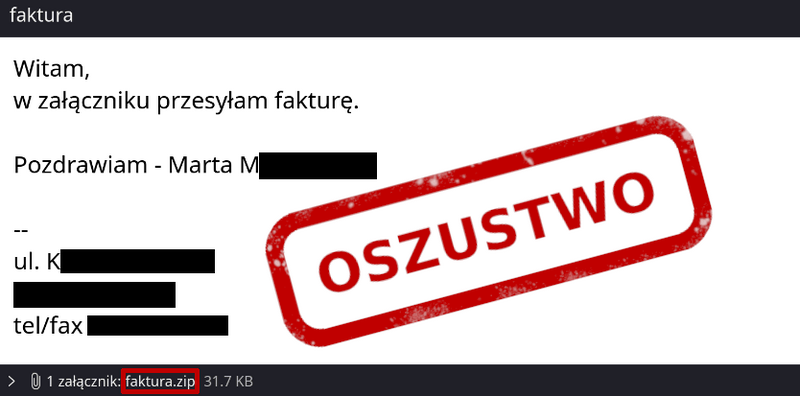 Faktura jako archiwum .zip w załączniku? Zachowaj czujność!