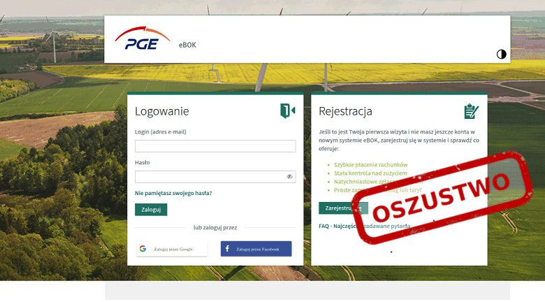 Wiadomość zachęca do „odebrania zwrotu” poprzez kliknięcie w link. Strona, do której ten link prowadzi, przypomina panel klienta dostawcy energii. Wprowadzone tam dane logowania trafiają bezpośrednio do przestępców.