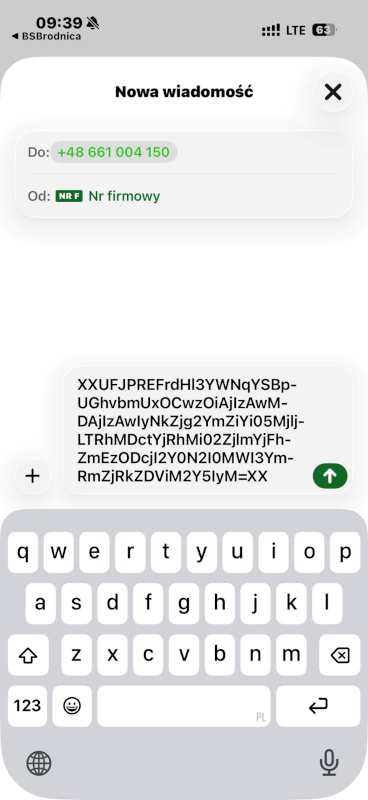 W tym kr oku wysyłamy SMS do Banku – aplikacja przekierowuje do nowej wiadomości z wypełnioną treścią – klikamy wyślij i wracamy do aplikacji BSBrodnica. |
