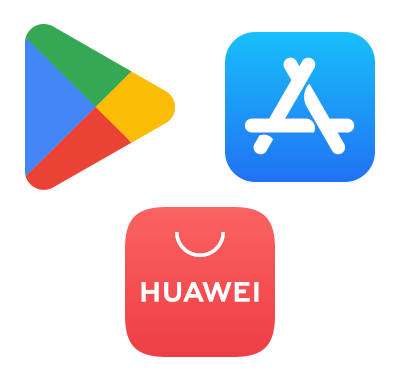 Google Play, Appstore lub App Gallery.