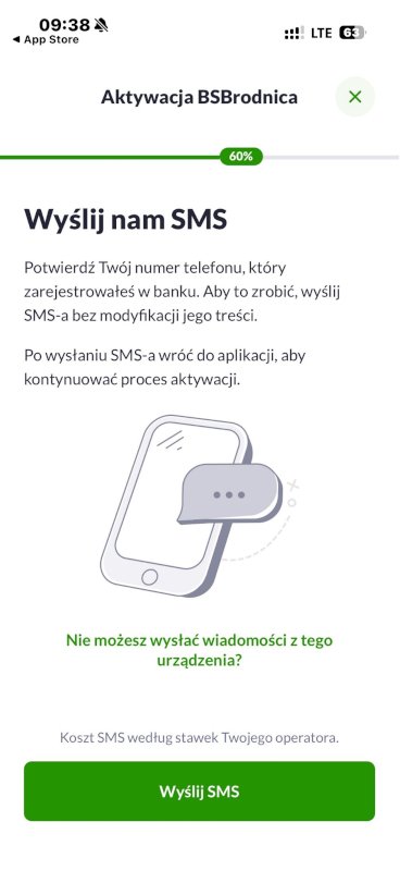 9. W tym kroku wyślij SMS do Banku – aplikacja przekierowuje do nowej wiadomości z wypełnioną treścią – kliknij wyślij i wróć do aplikacji BSBrodnica.