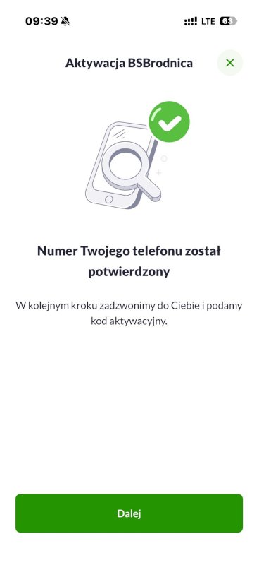 11. Po udanej weryfikacji SMS następuje drugi etap potwierdzenia tożsamości klienta – kliknij „Dalej”.